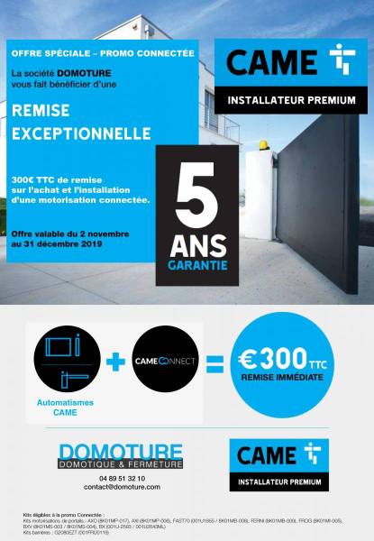 REMISE EXCEPTIONNELLE de 300 euros TTC sur l'achat et l'installation d'une motorisation connectée CAME.